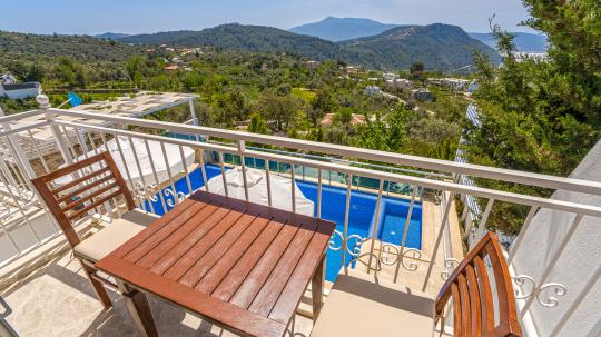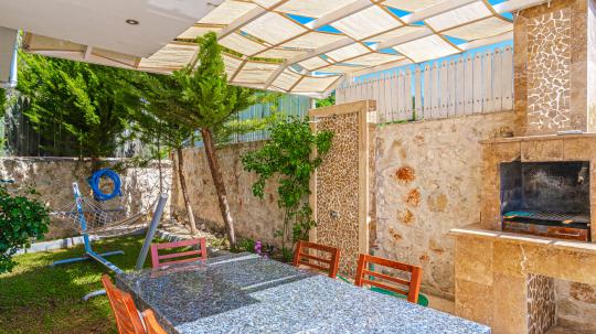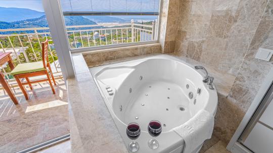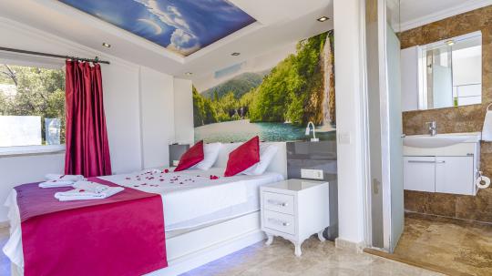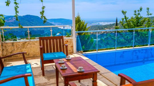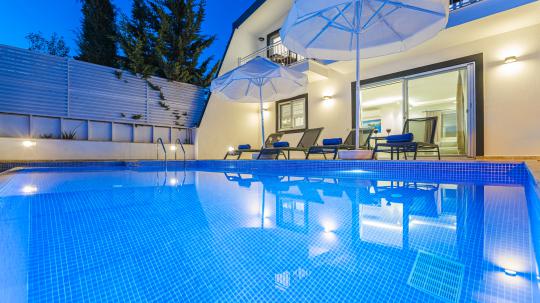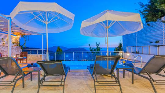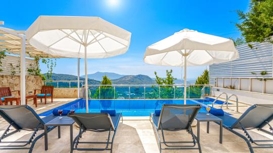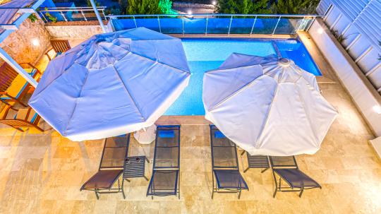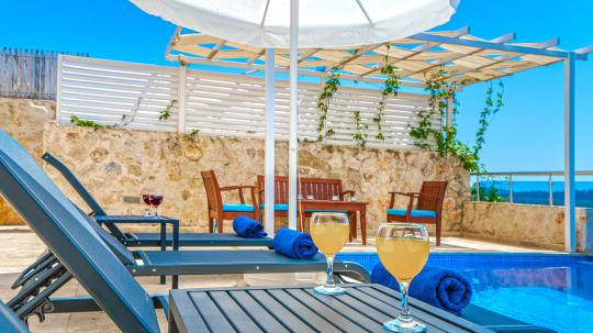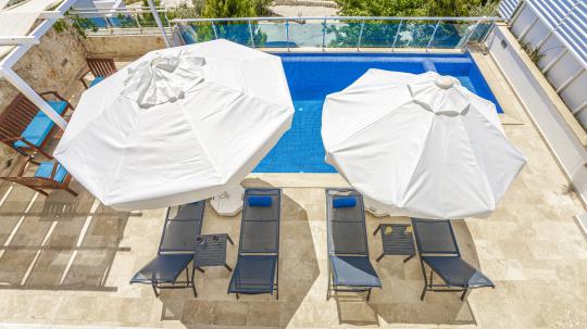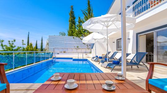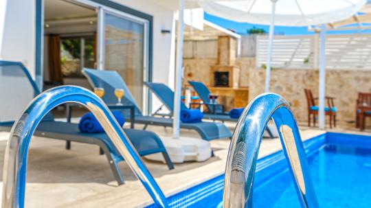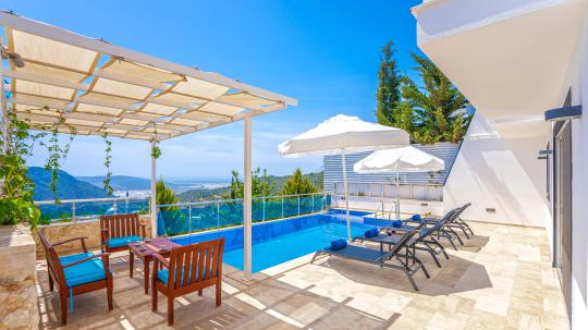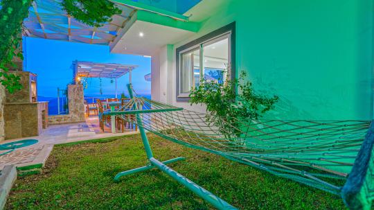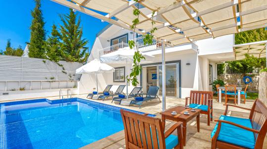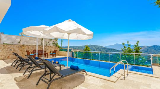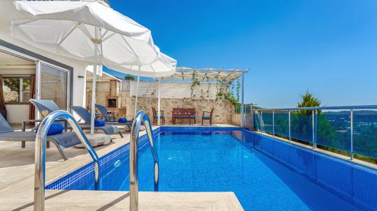 Villa Poli, Kalkan Üzümlü bölgesinde yer alan, eşsiz doğa manzarasına sahip tatil villamızdır. 2 yatak odalı ve 4 kişi konaklama kapasitesine sahip olan villamızın havuz terası yemyeşil doğa manzarasına açılmaktadır. Korunaklı havuz alanı sayesinde hem manzara keyifini çıkarıp hemde izole bir tatil fırsatı sunmaktadır. Geniş havuz terasında bahçe salıncağı, yemek masası, oturma alanı, barbekü, çocuk oyun alanı, masa tenisi, yeşil bahçesi ve küçük misafirler için çocuk havuzu bulunmaktadır. Her mevsim sıcacık bir tatil fırsatı sunan villamızın dış havuzunda ısıtma sistemide bulunmaktadır. Misafirlerimiz için tüm detaylar düşünülmüş olan villamızın ebeveyn yatak odasında keyif yapabileceğiniz jakuzisi de bulunuyor. Villamız çekirdek aileler ve balayı çiftlerimiz için uygundur.