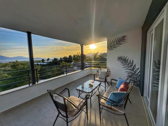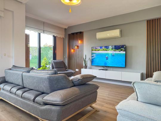 Villa Poli Eldirek, Fethiye Eldirek bölgesinde konumlanmış olan, 3 yatak odası ve 3 banyosuyla 6 kişilik kapasiteye sahip bir villamızdır. Bu özel villamız şık ve rahat tasarımıyla geniş aile ve arkadaş grupları için ideal olarak tasarlanmıştır, Korunaklı yapısıyla çevreden izole bir tatil deneyimi sunmaktadır. Ayrıca bir üst katta ikinci mutfak alanı yer almaktadır.