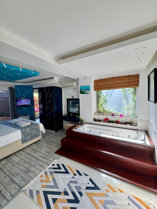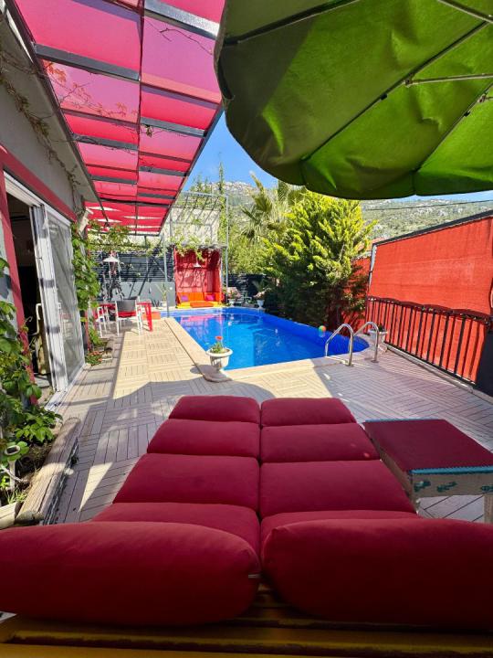 Villa Renk, Kalkan İslamlar mevkiinde yer alan 1 yatak odalı, 2 kişi konaklama kapasitesine sahip tatil villamızdır. Korunaklı havuz terası bulunan villamız doğa ile iç içe konumlanmıştır. Balayı çiftleri için uygun olan villamızın yatak odasında jakuzisi bulunmaktadır. Geniş havuz terasında gün batımı eşliğinde yemek yiyebileceğiniz yemek masası da bulunmaktadır.Geniş ve yeşil bahçesinde hamak,bahçe salıncağı ve oturma alanı bulunmaktadır.