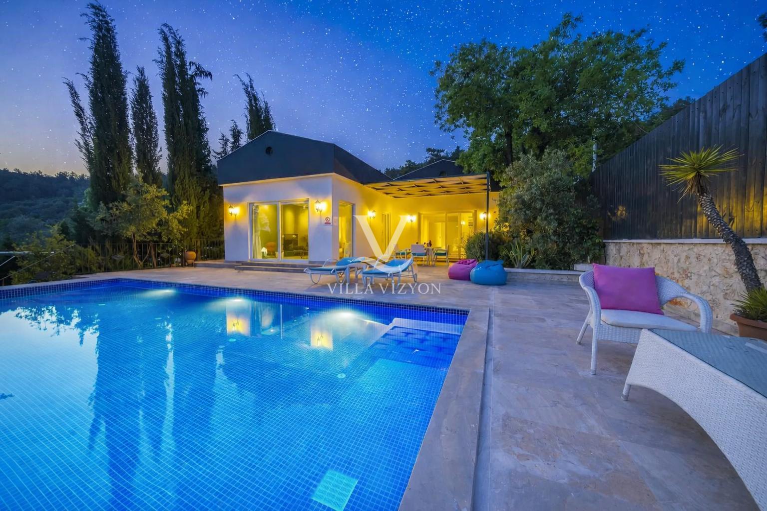 Villa Saklı Ev, Antalya Kalkan bölgesinde yer alan, 1 yatak odalı 2 kişilik kapasiteye sahip bir tatil villasıdır. Tek katlı yapısı, geniş bahçesi ve korunaklı havuzuyla doğayla iç içe sakin bir konaklama fırsatı sunmaktadır. Bahçesinde salıncak, şezlonglar, şemsiyeler, oturma grubu, yemek masası ve barbekü gibi olanaklar yer alır. Havuz terasın da deniz manzarası ile keyifli bir tatil için sizi beklemektedir.