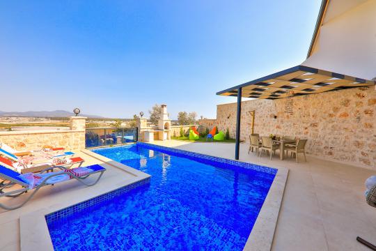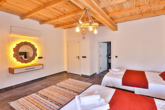 Villa Sandak 1, Muğla Seydikemer’in Karadere bölgesinde yer alan, 3 yatak odalı ve 6 kişilik konaklama kapasitesine sahip lüks kiralık villamızdır. Geniş bahçe alanı, tamamen korunaklı özel havuzu ve modern donanımıyla özellikle çekirdek aileler ve balayı çiftleri için ideal bir tatil seçeneğidir.