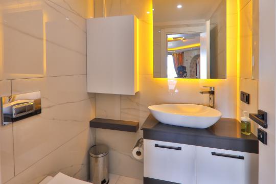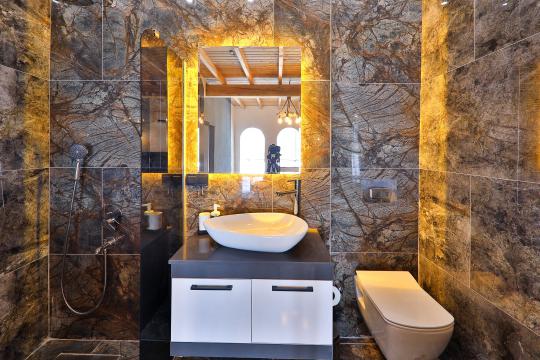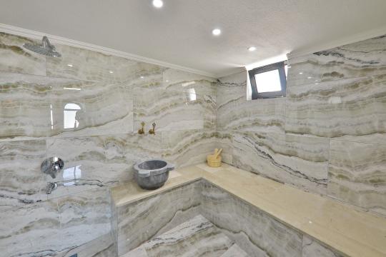 Villamızda özel yüzme havuzu, çocuk havuzu, sıcak havuz, hamam ve sauna gibi konforu artıran detaylar yer alırken; iç mekânda jakuzili yatak odaları, her odada özel banyo-tuvalet ve ortak kullanım için ekstra bir tuvalet bulunmaktadır.
