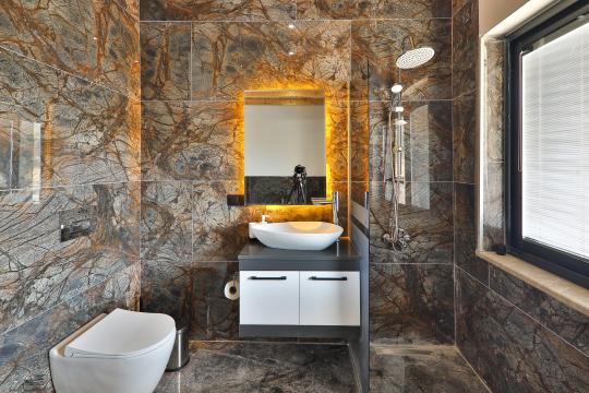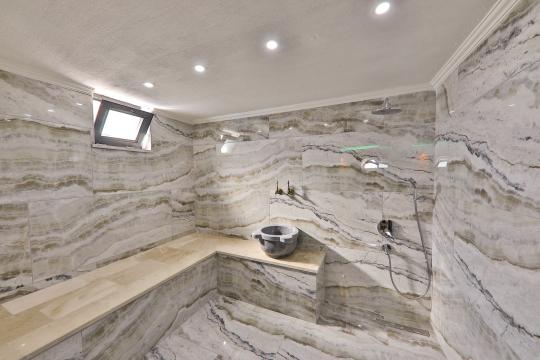Villamızda özel yüzme havuzu, çocuk havuzu, sıcak havuz, hamam ve sauna gibi konforu artıran detaylar yer alırken; iç mekânda jakuzili yatak odaları, her odada özel banyo-tuvalet ve ortak kullanım için ekstra bir tuvalet bulunmaktadır.