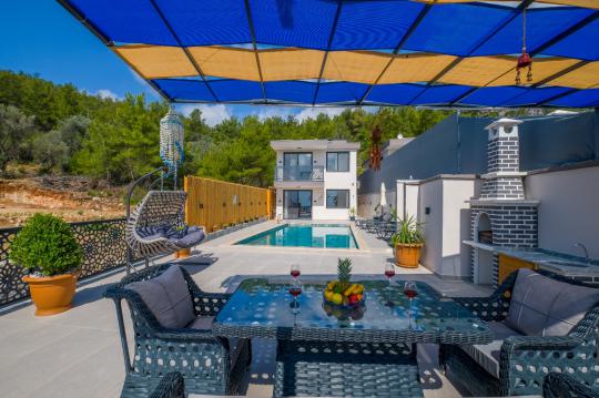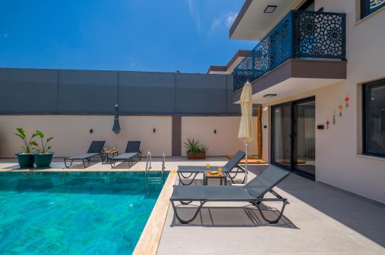 Villa Santa , Fethiye Seydikemer'in karadere mevkiinde bulunan 4 kişilik kapasiteye, 2 yatak odasına ve 2 banyoya sahip müstakil bir villadır. Villamız kapasitesi gereği çekirdek aile veya arkadaş grupları için ideal bir tercih.Villa Santa bulunduğu konum ayrıcalığıyla market,resturant ve plaja yakın olmakla büyük bir avantaj sağlamaktadır. Villamız şık ve sade tasarımıyla ön plana çıkarken geniş havuz terasında bulunan şezloglarda uzanarak güneşlenebilir, oturma alanında dinlenebilirsiniz.
