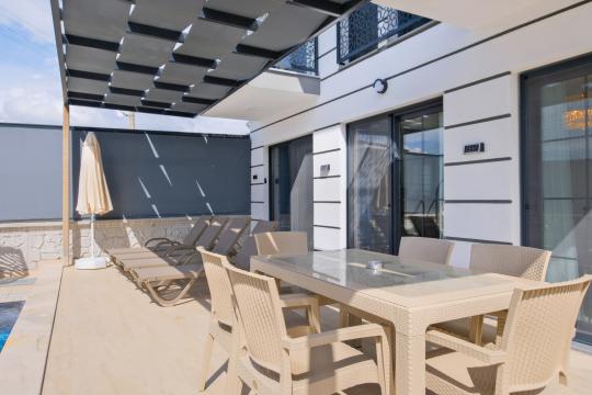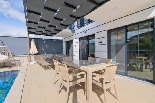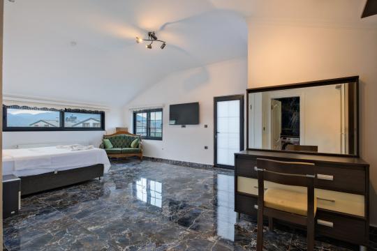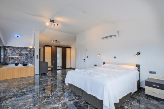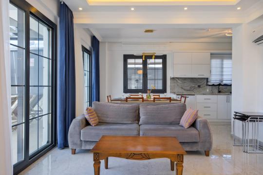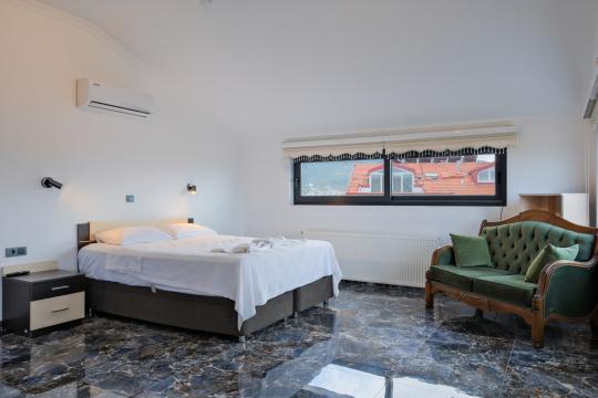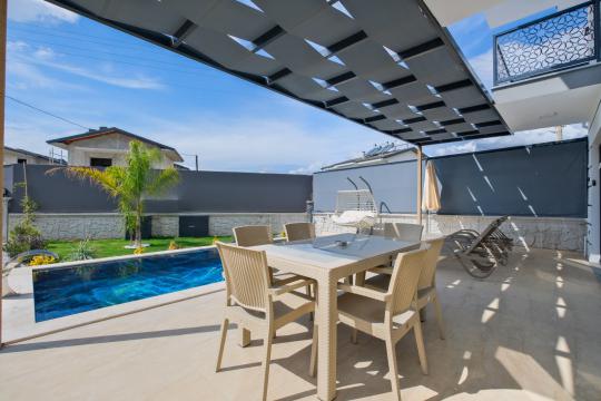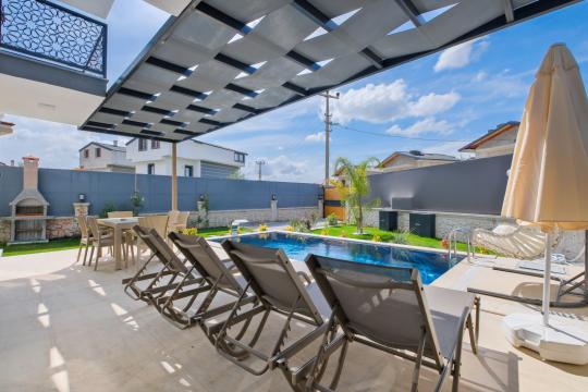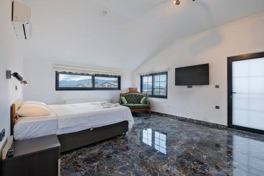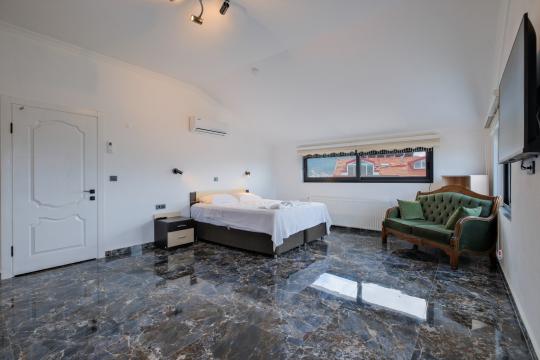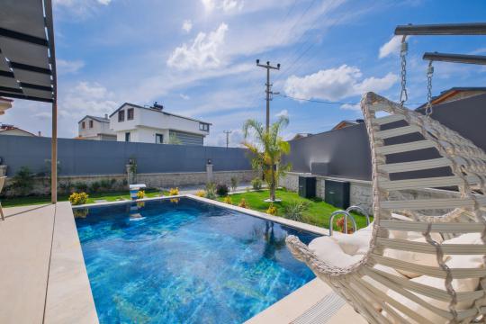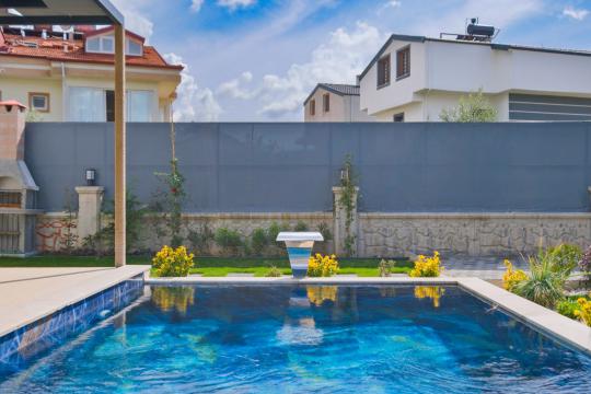 Villa Sembol, şık ve lüks iç tasarımı, göz kamaştıran mimarisi ile Fethiye merkezde konumlanmıştır. 3 yatak odası ve 6 kişilik konaklama kapasitesi sayesinde çekirdek ailelerin yanında geniş ailelere de konforlu ve lüks bir villada tatil yapabilme imkanı sunmaktadır. Özel havuzu, jakuzisi ve saunası sayesinde huzurlu bir tatil geçirerek tüm yılın stresinden kurtulabilir, bahçesinde yer alan geniş alanı sayesinde de ailenizle eğlenceli vakit geçirebilirsiniz. Villa Sembol, aynı zamanda sessiz ve sakin bir konuma sahiptir.