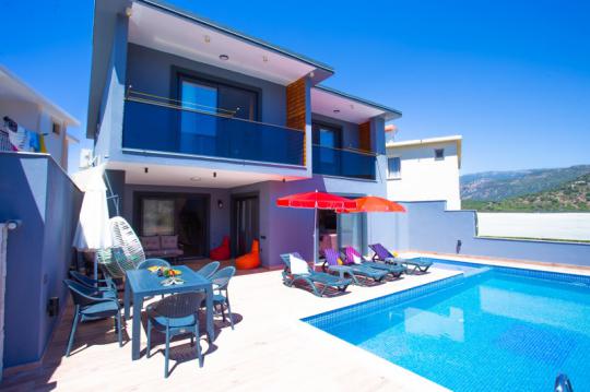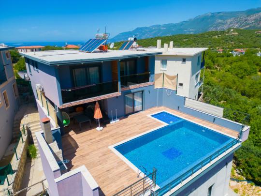 Villa Şimşek 2, Kaş Bayındır bölgesinin yemyeşil doğası içinde konumlanmış olan, eşsiz doğa manzaralı tatil villamızdır.