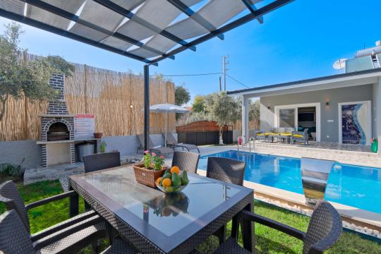 Villa Simurg, Fethiye Kargı bölgesinde yer alan, 2 yatak odası ile 4 kişilik konaklama kapasitesine sahip olan tatil villamızdır. Korunaklı havuz alanı sayesinde izole bir tatil fırsatı sunan villamızın geniş havuz terasında yemyeşil bahçesi, bahçe salıncağı, yemek masası, barbeü ve küçük misafirlerimiz için çocuk oyun alanı bulunmaktadır. Minimal ve konforlu dizaynı ile dikkat çeken villamızın ebeveyn yatak odasında çift kişilik jakuzisi de bulunuyor. Plaja yakın konumu ve doğa içerisinde yer alması ile eşsiz bir tatil fırsatı sunan villamız çekirdek aileler ve balayı çiftlerimiz için oldukça uygundur.