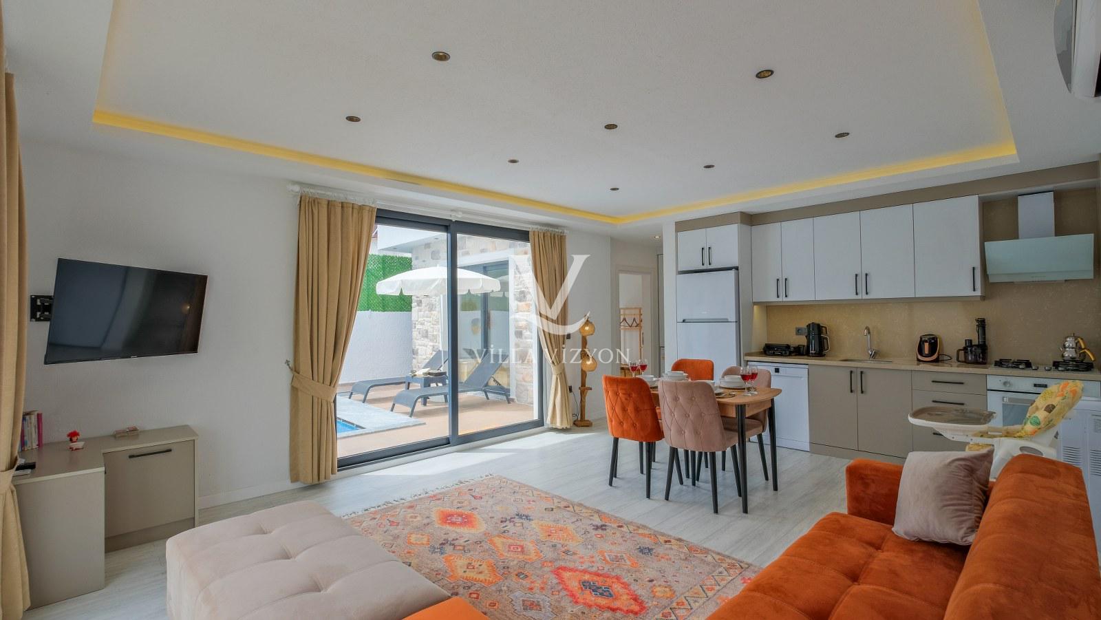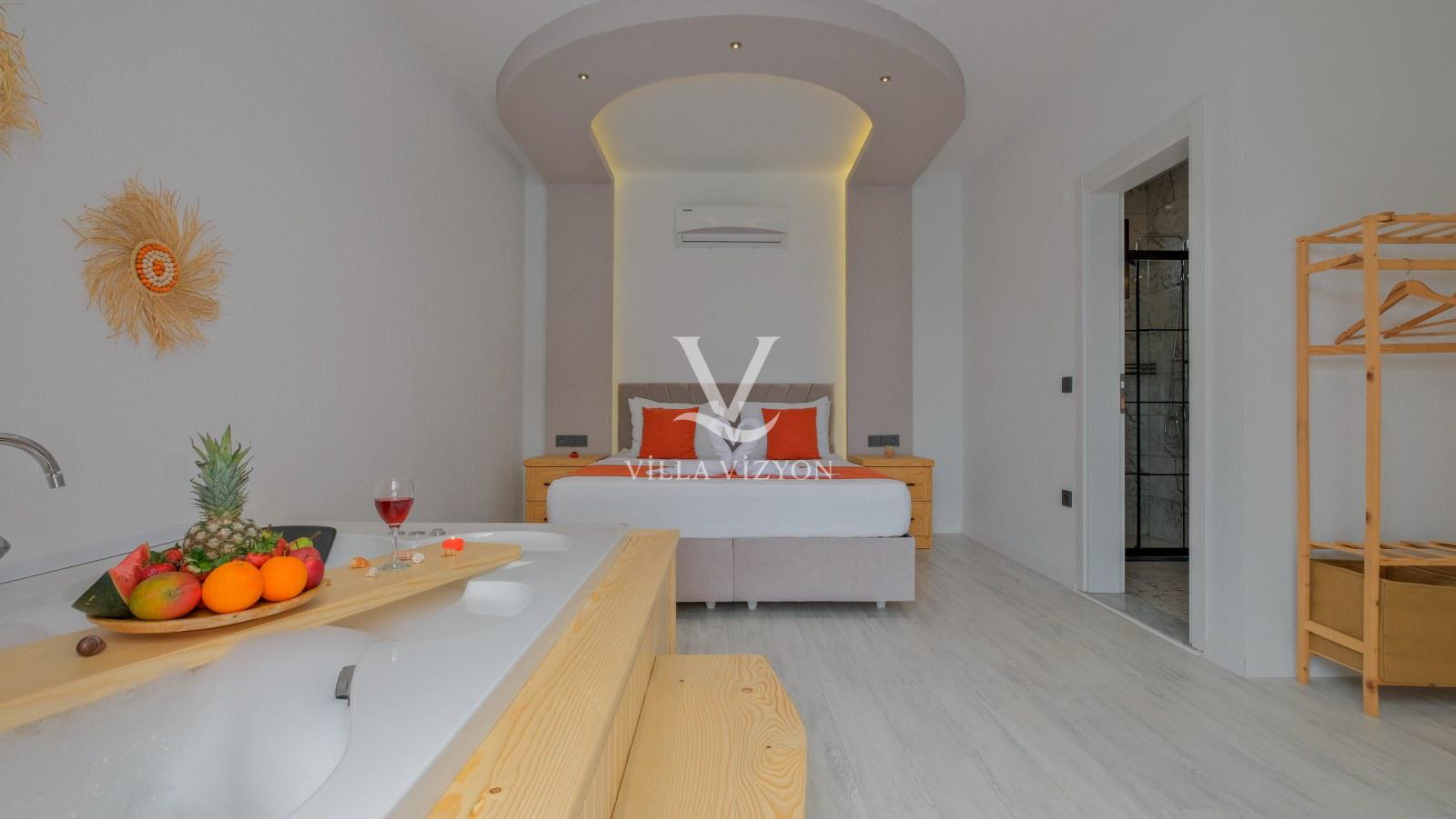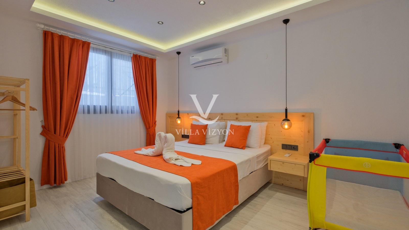 Villa Sitrin 1, Fethiye’nin Karaçulha mevkiinde yer alan, 2 yatak odalı ve 4 kişi konaklama kapasiteli özel havuzlu bir tatil villasıdır. Villamızda 2 adet çift kişilik yatak bulunmakta olup, balayı çiftleri ve çekirdek aileler için oldukça idealdir.