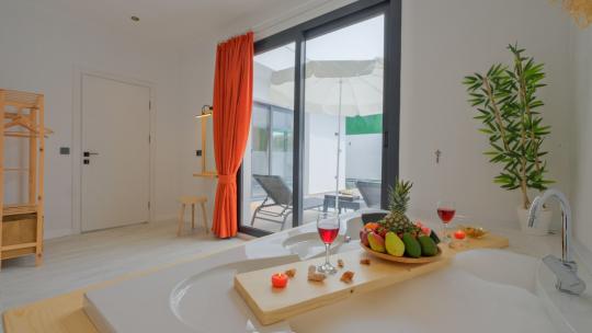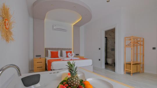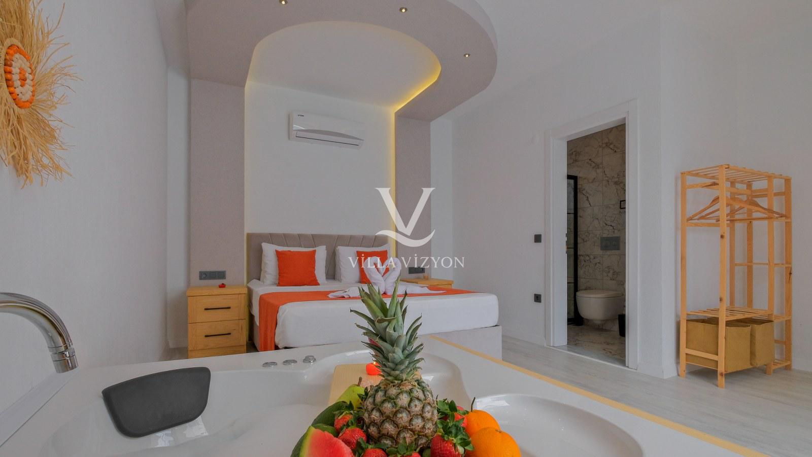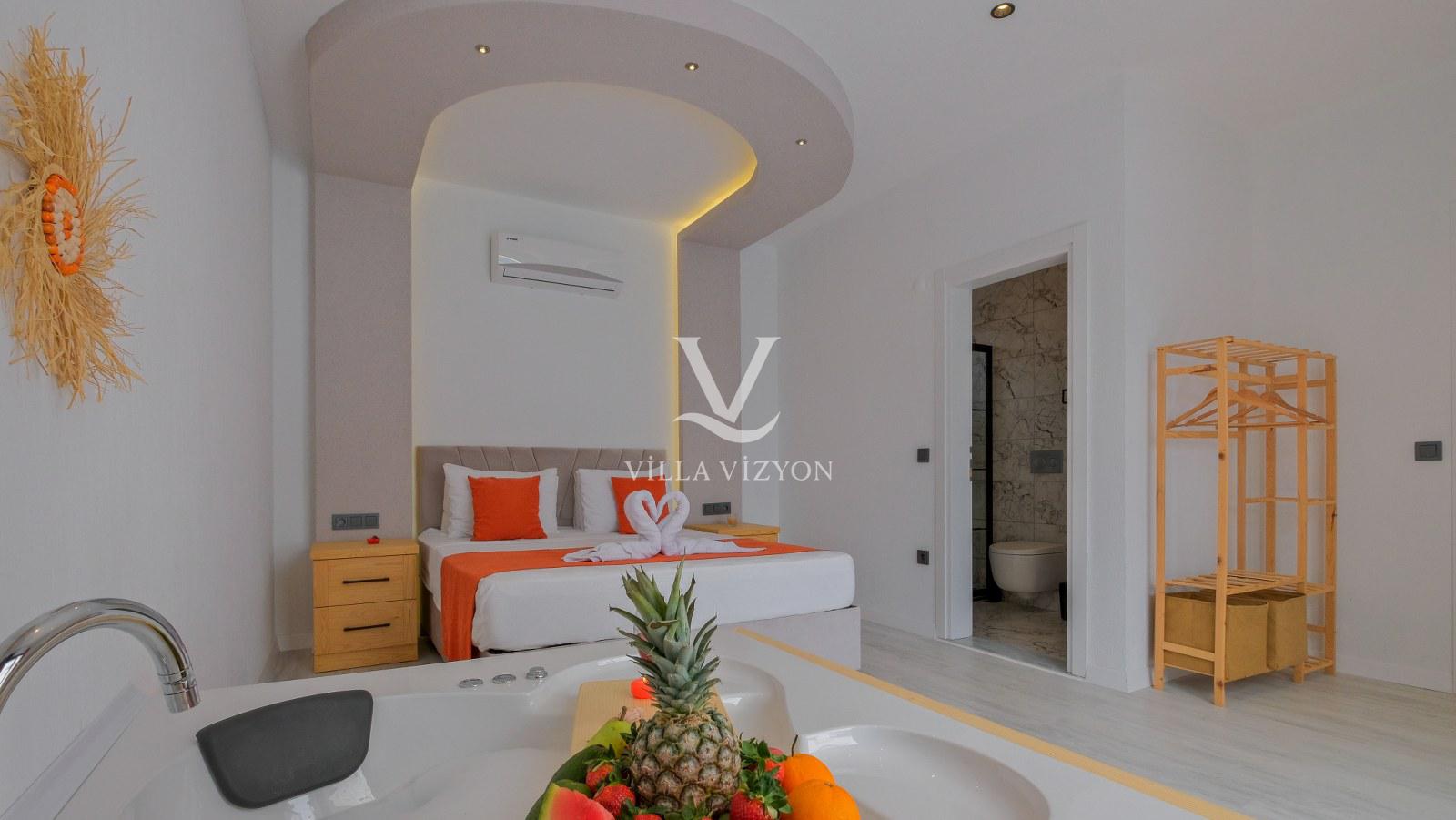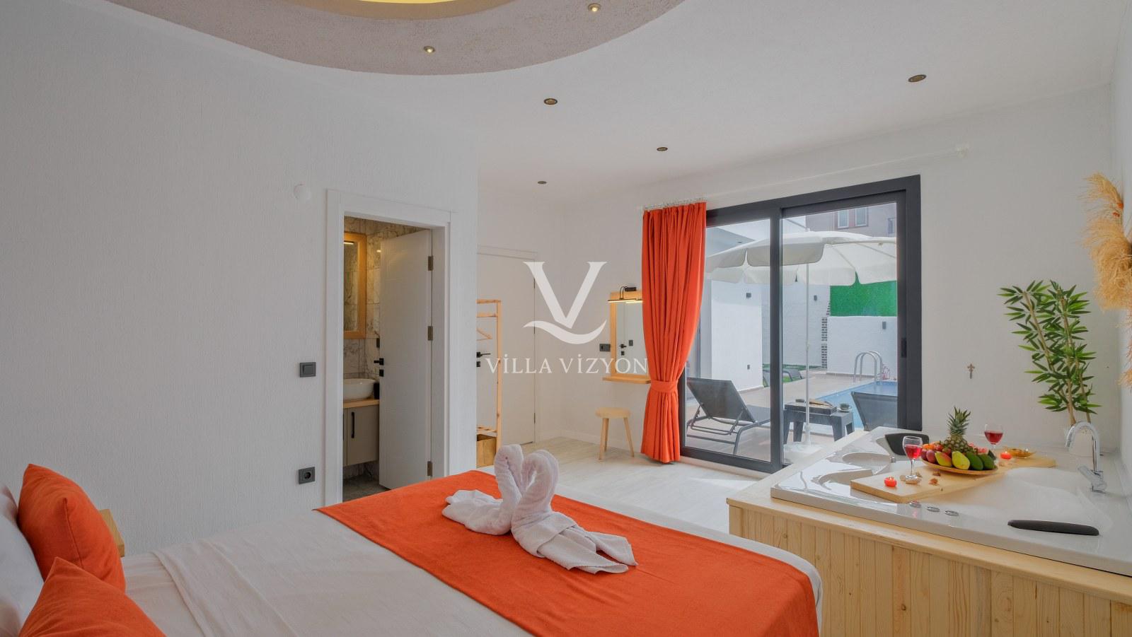 Villa Sitrin 1, Fethiye’nin Karaçulha mevkiinde yer alan, 2 yatak odalı ve 4 kişi konaklama kapasiteli özel havuzlu bir tatil villasıdır. Villamızda 2 adet çift kişilik yatak bulunmakta olup, balayı çiftleri ve çekirdek aileler için oldukça idealdir.
