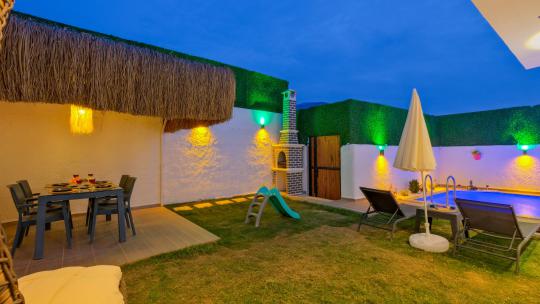 Şehir merkezine yakın konumu sayesinde ulaşım açısından avantaj sağlar. Özel yüzme havuzu ve bahçesi dışarıdan görünmeyecek şekilde korunaklı olup, misafirlerimize gözlerden uzak, huzurlu ve konforlu bir tatil imkânı sunar. Bahçede barbekü yapabilir, sevdiklerinizle keyifli vakit geçirebilirsiniz.
