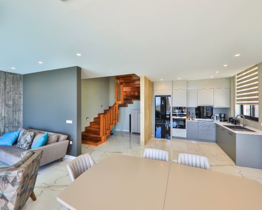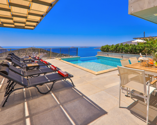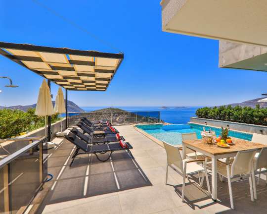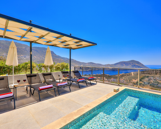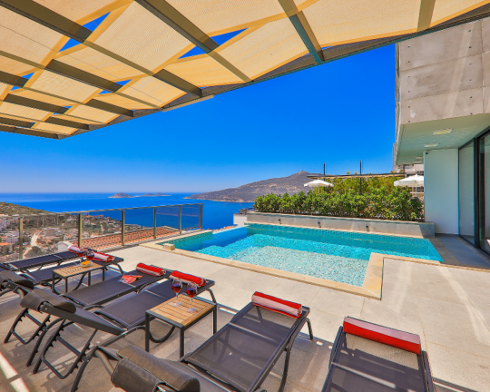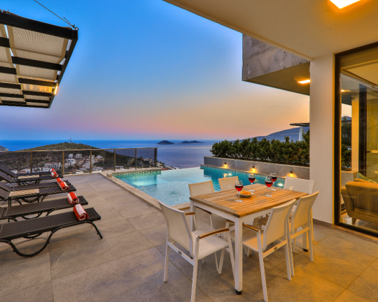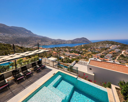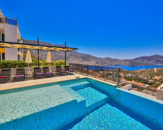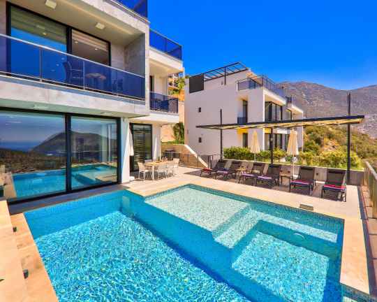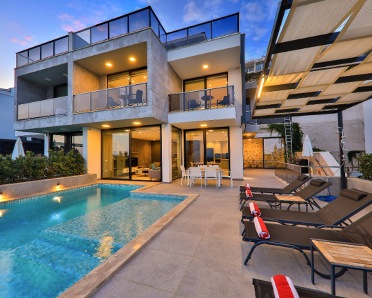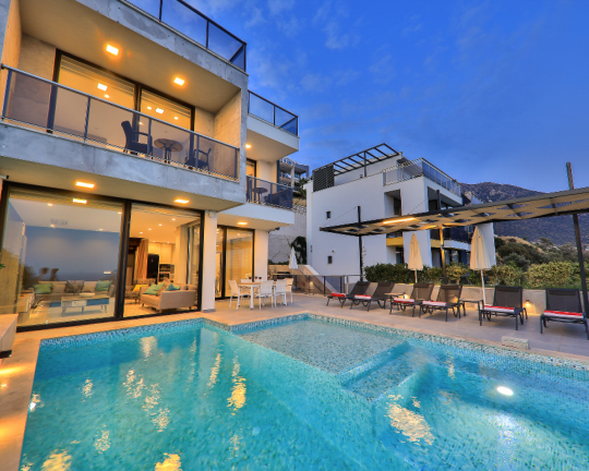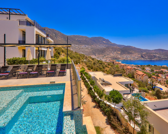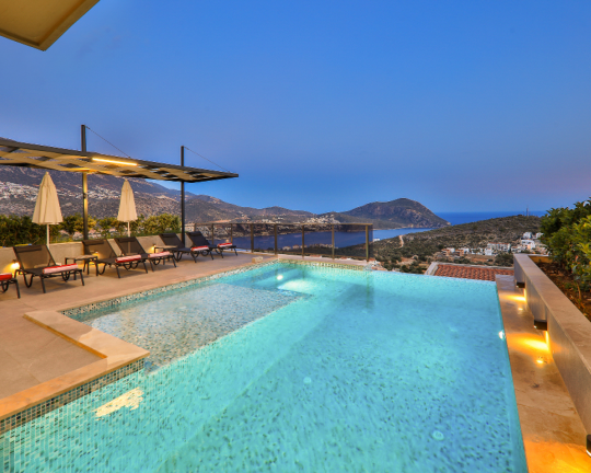 Villa Skylight, Kalkan’ın gözde bölgelerinden Kalamar’da konumlanan, denize sadece 1 km mesafede lüks bir tatil villasıdır. 3 yatak odası ve 6 kişilik konaklama kapasitesine sahip villa; özel yüzme havuzu, spor salonu, oyun odası, jakuzili çatı terası ve geniş bahçesi ile konforlu bir tatil sunar. Langırt, bilardo ve masa tenisi gibi aktivitelerle eğlenceli zaman geçirebilir, modern tasarımıyla ayrıcalıklı bir konaklama deneyimi yaşayabilirsiniz.