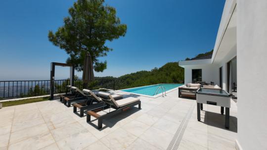 Villa Sun, Kalkan İslamlar bölgesinde yer alan yemyeşil doğa manzaralı ve 2 yatak odası ile 4 kişi konaklama kapasitesine sahip olan tatil villamızdır. Eşsiz manzaralı havuz terasında masa tenisi, langırt, oturma alanı, yemek masası, yeşil bahçe alanı ve hamak bulunmaktadır. Lüks ve şık dizaynı ile göz kamaştıran villamızın ana yatak odasında jakuzi ve diğer yatak odasında da manzara eşliğinde keyif yapabileceğiniz küvet bulunmaktadır. Misafirlerimizin tüm taleplerine cevap verebilen bu villamız keyifli bir tatil sunmak için özenle dizayn edilmiştir. Villamız balayı çiftlerimiz ve çekirdek aileler için keyifli bir tatil sunmaktadır.