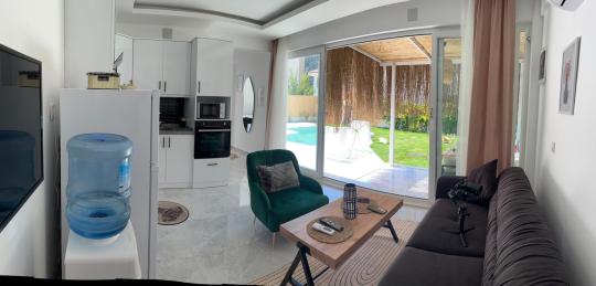 NOT : Villamız evcil hayvanınız ile birlikte konaklamaya uygundur. Talebiniz olması halinde ekstra olarak 3,000 TL temizlik ücreti talep edilmektedir.