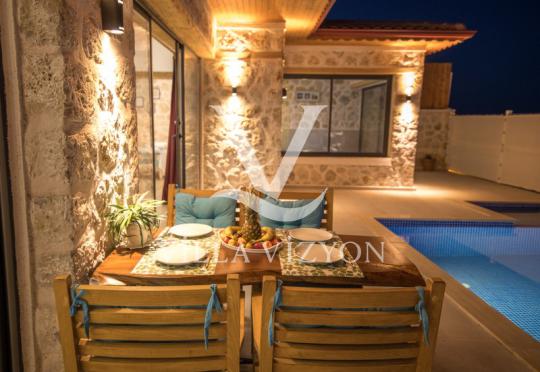 Villa Sur, Kalkan Kördere mevkiinde, geleneksel taş mimarisi ve sonsuz maviliğe uzanan deniz manzarasıyla eşsiz bir tail keyfini sizlere sunmaktadır. Villamız hem konfor hem estetik arayan misafirler için mükemmel bir tercih olmakla beraber 4 kişilik kapasiteye, 2 yatak odası ve 2 banyoya sahiptir. Ayrıca villamız içerisinde sizlere keyifli bir tatil yaşatmak adına her detay düşünülmüş olup kapalı havuz seçeneği de sunulmaktadır. Gelenksel mimarinin zarafetiyle, modern konforun birleştiği bu özel villada sevdiklerinizle birlikte unutulmaz anlar yaşayın.