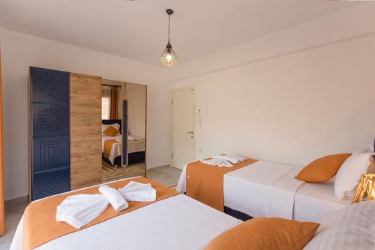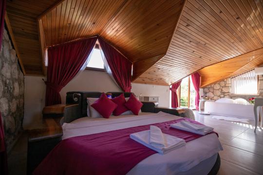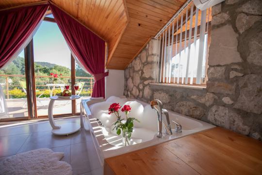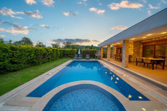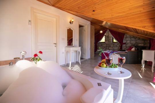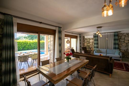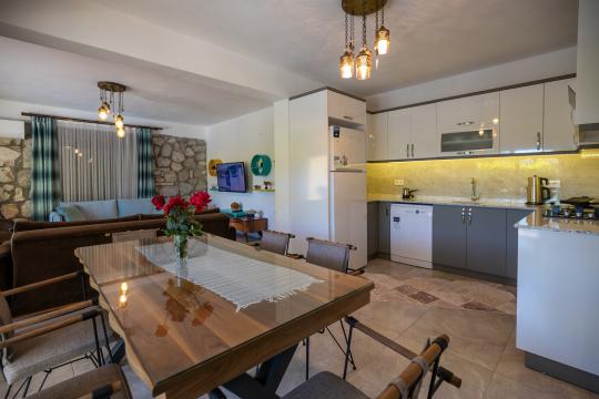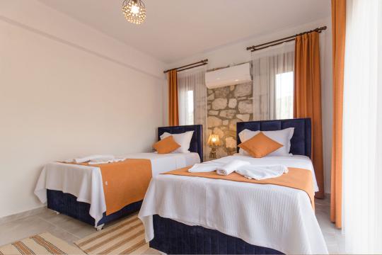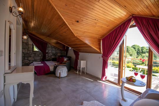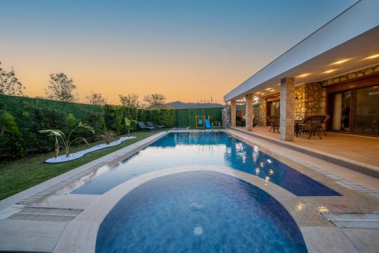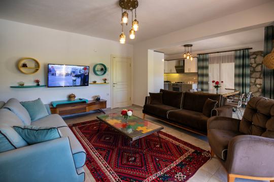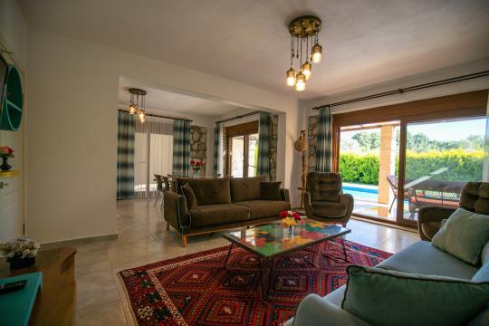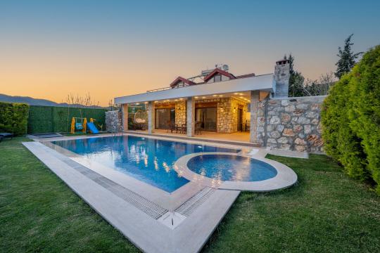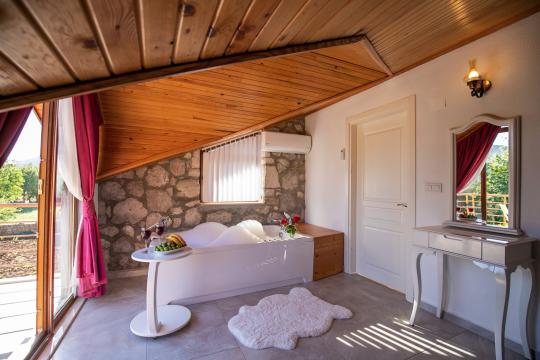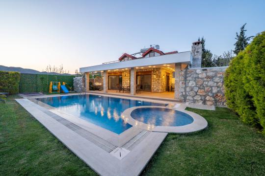 Villa Terra Toprak, Fethiye Kayaköy bölgesinde yer alan havuzu korunaklı, 4 kişilik konaklama kapasitesi ile 2 yatak odalı tatil villamızdır. Muhteşem bahçe dizaynı ve taş mimarisi ile göz kamaştıran villamızın havuz alanının korunaklı olması sayesinde çevreden izole sakin bir tatil sizleri beklemektedir. Doğa içerisinde konumlandırılmış olan villamızın geniş havuz terasında yeşil bahçe alanı, oturma alanı, küçük misafirlerimiz için çocuk havuzu ve çocuk oyun alanı da mevcuttur. Ebeveyn yatak odasında bulunan jakuzi sayesinde keyifli bir tatil geçirebileceğiniz villamız çekirdek aileler ve balayı çiftlerimiz için eşsiz bir tatil fırsatı sunmaktadır.