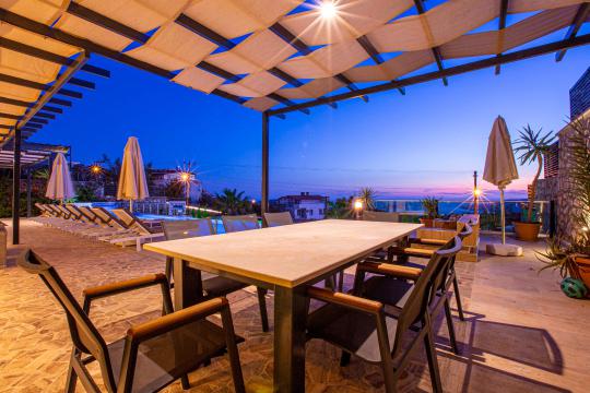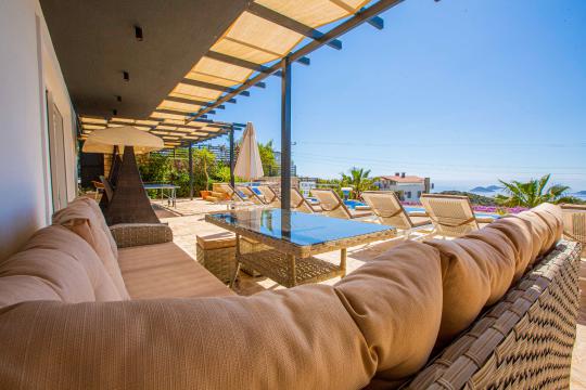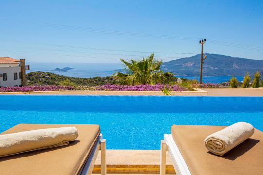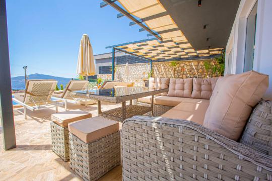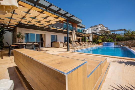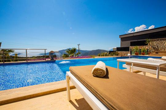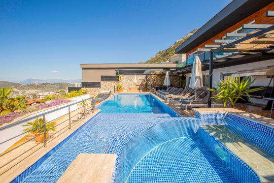 Villa Tiger Exclusive, Kalkan Kördere bölgesinde yer alan, muhteşem deniz manzarası, şehir merkezine yakın konumu ve doğayla iç içe ortamıyla 8 kişilik konaklama kapasitesine sahip ideal bir tatil villasıdır. Toplam 4 yatak odalı bu lüks kiralık villa; sonsuzluk havuzu, çocuk havuzu olarak da kullanabileceğiniz havuz jakuzisi, jakuzili ebeveyn yatak odası ve manzaralı terasıyla hem aileler hem arkadaş grupları için unutulmaz bir konaklama sunar. Kalkan'ın eşsiz deniz manzarası eşliğindeki geniş havuz terasında gün batımında yemek yiyebileceğiniz yemek masası, oturma alanı ve keyifli vakit geçirmenizi sağlayacak masa tenisi ve langırt da mevcuttur. Villamız konforlu ve lüks bir villa tatilini sizler için sağlamaktadır.