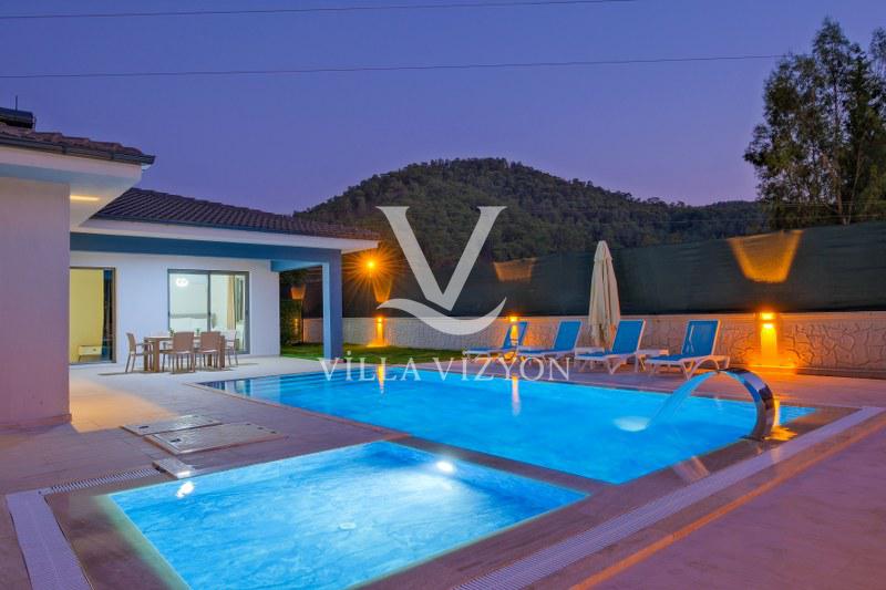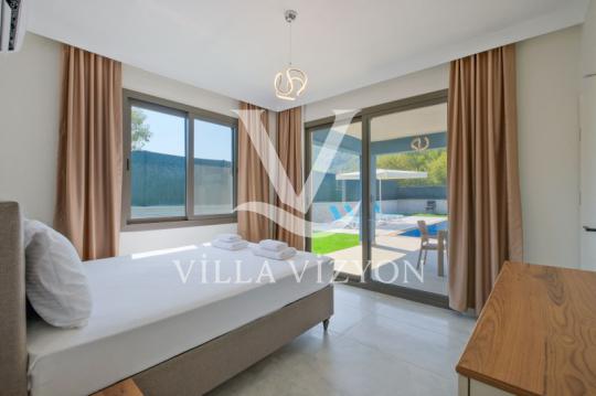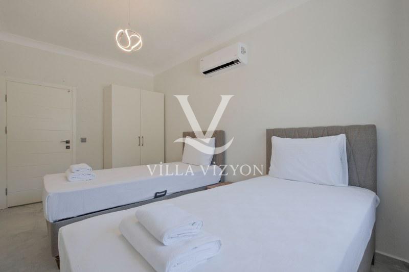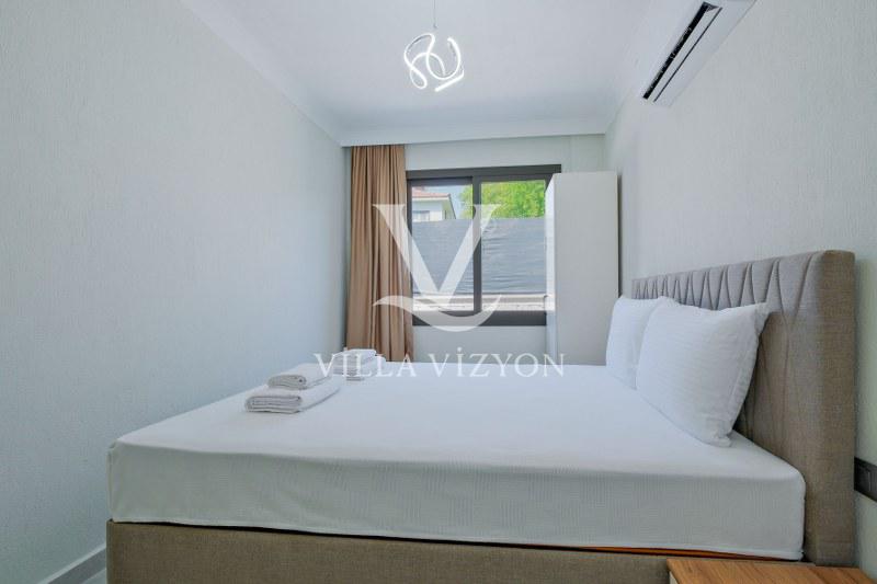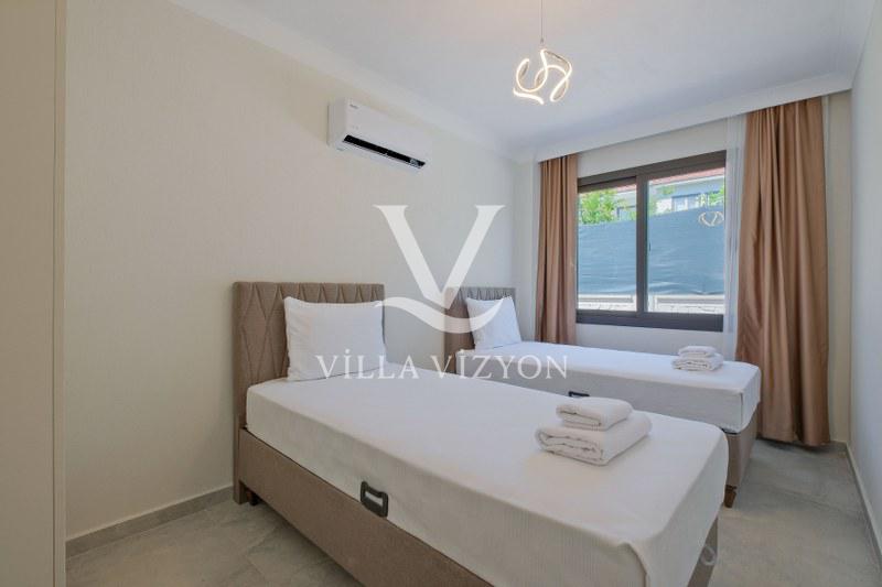 3 yatak odası ile 6 kişilik konaklama kapasitesine sahip olan villamızın geniş havuz terasında yemek masası ve küçük misafirlerimiz için çocuk havuzu yer almaktadır.Sakin ve huzurlu atmosferi, şık dizaynı ile kendine hayran bırakan villamız geniş aileler ve kalabalık arkadaş grupları için huzurlu bir tatil fırsatı sunmaktadır.Ayrıca bu villamız İnlice Plajına oldukça yakın bir mesafede konumlanmıştır.