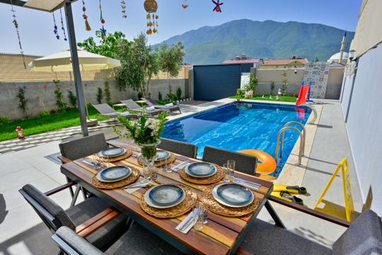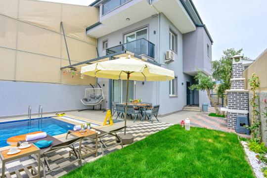 Villa Venüs 2, Fethiye'nin Karaçulha Mahallesi'nde yer alan Villa Venüs 2, 4 yatak odası ve 8 kişilik konaklama kapasitesiyle kalabalık aileler veya arkadaş grupları için ideal bir tatil seçeneğidir. Geniş ve ferah yapısıyla dikkat çeken villamız, modern tasarımı ve konforlu detaylarıyla öne çıkmaktadır. Merkeze yakın konumu sayesinde hem doğayla iç içe huzurlu bir konaklama sunar hem de şehir olanaklarına kolay erişim sağlar. Ayrıca villamızın hemen yanında yer alan ikiz konseptteki Villa Venüs 1, birlikte tatil yapmak isteyen büyük aile grupları için mükemmel bir alternatiftir.