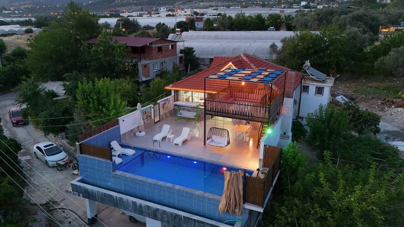 Villa Yörük Çayköy, Kalkan Çayköy bölgesinde yer alan, havuzu korunaklı ve 4 kişilik kapasitesi ile 2 yatak odası bulunan tatil villamızdır. Havuzu doğa manzarasına açılan villamızın havuz önündeki perde sistemi sayesinde havuz alanı korunaklı hale gemektedir. Geniş hvuz terasında yüksek teras köşkü, bahçe salıncağı, langırt ve barbekü mevcuttur. Ebeveyn yatak odasında bulunan romantik jakuzi de keyif yapabileceğiniz villamız çekirdek aileler ve balayı çiftleri için oldukça uygundur.